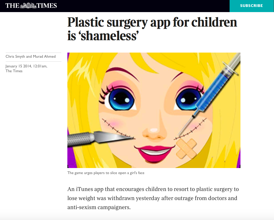 In 2014, in working with the British Association of Aesthetic Plastic Surgeons (BAAPS) as their day-to-day press officer and social media manager, I pitched a story to Times Journalist Chris Smyth about the shameless proliferation of apps designed as games for children – even brazenly replicating beloved Disney characters to do so. Whilst this (rightly) received attention in the press, raising public awareness about a dangerous phenomenon often requires more than the traditional approaches, especially in digital spaces.